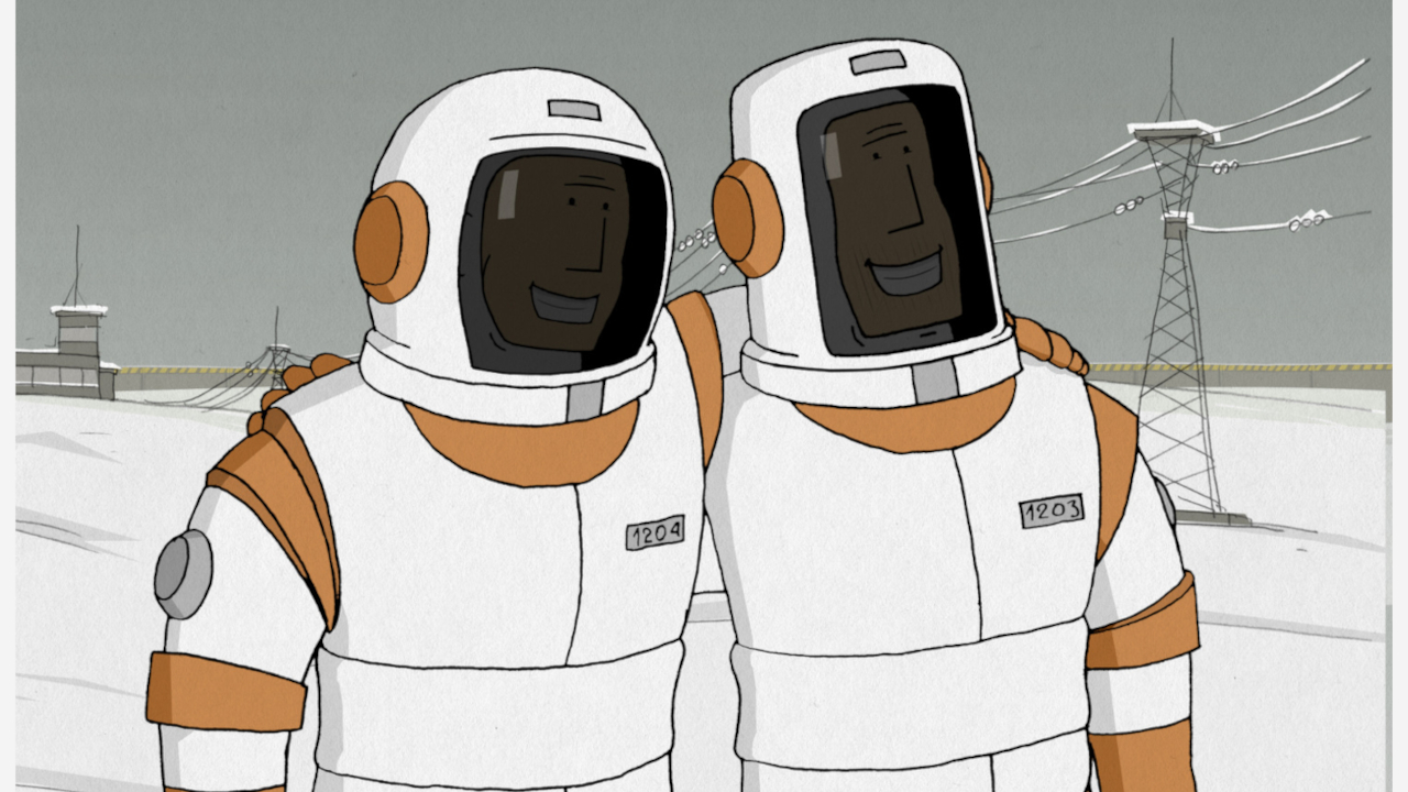 Интересно, что у персонажей нет имен, только номера — 1203 и 1204. Более того, в ходе мультфильма друзья не произносят ни слова — эмоции передают окружающие звуки и музыка...