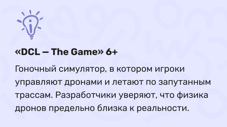 — Третья категория игр — это симуляторы. Они могут быть полезны для овладения прикладными навыками. Например, управление дронами в симуляторе «DCL — The Game» или в симуляторе полета «Аэросим».