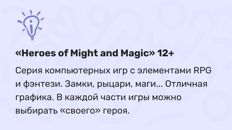 Интересна серия игр «Герои», где фигурируют священники, рыцари, монахи. Много лет назад именно эта игра подтолкнула меня к мысли узнать больше о монашестве, что затем привело меня в священники. В ней присутствуют и «демонические» персонажи, поэтому если ребенок играет в такие игры, нужно заранее объяснить ему, что, например, вампиров не существует — чтобы он не воспринимал их всерьез.
