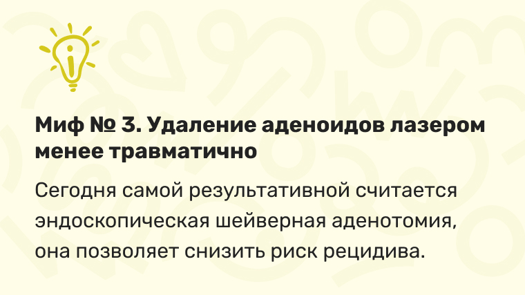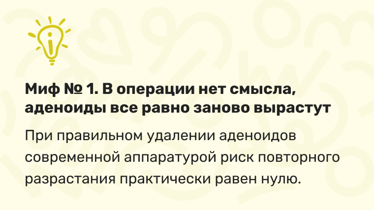 Но если интервалы между эпизодами острых респираторных инфекций слишком короткие, аденоиды постоянно находятся в гипертрофированном, то есть увеличенном, виде. И тогда возникают вышеперечисленные симптомы.