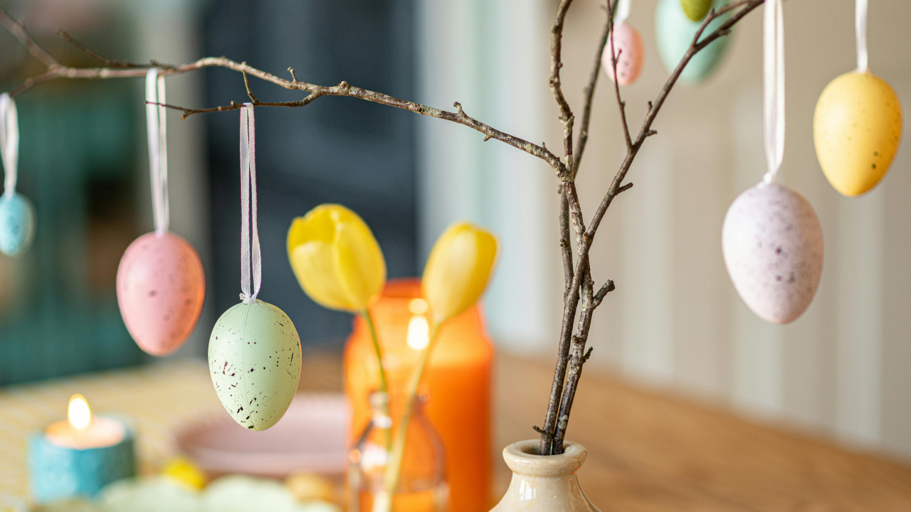 Пасха в этом году поздняя, а оттого очень долгожданная. Если душа просит праздника, то можно украшать не только яйца, но и сделать целое пасхальное дерево. Для него подходят живые или искусственные ветки или одна деревянная основа. Их можно покрасить, обмотать веревочками, лентами, светящимися гирляндами или оставить прорастать. Поставить ветки можно в вазу или кашпо, закрепив их флористической губкой. Для украшения дерева подойдет всё, что есть в доме, и, конечно, разноцветные пасхальные яйца. Лучше, если они будут легкими пластиковыми, а не тяжелыми съедобными или деревянными. Пластиковые яйца дольше прослужат и не будут тянуть ветки вниз.