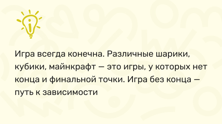 На самом деле, если правильно выстроен режим дня и расписание ребенка, то на телефонные игры времени не остается. Наполните день интересными активностями. Это могут быть секции и кружки, прогулки и встречи с друзьями, вечера с настольными играми и книжный клуб.