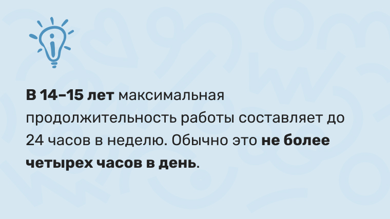 Для начала предлагаем ознакомиться с правовой информацией о том, на какую официальную работу, в зависимости от возраста и на каких условиях, может рассчитывать ваш ребенок. Итак: