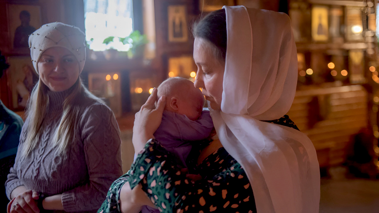 Ребенок плачет, потому что боится непривычной обстановки и устал. Кроме того, если крестить малыша позже трех месяцев, то он может испугаться еще и незнакомых людей, которые берут его на руки (например, крестных, которых он не видел раньше).