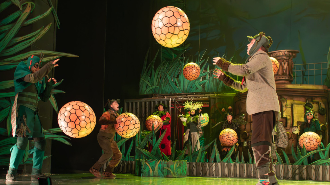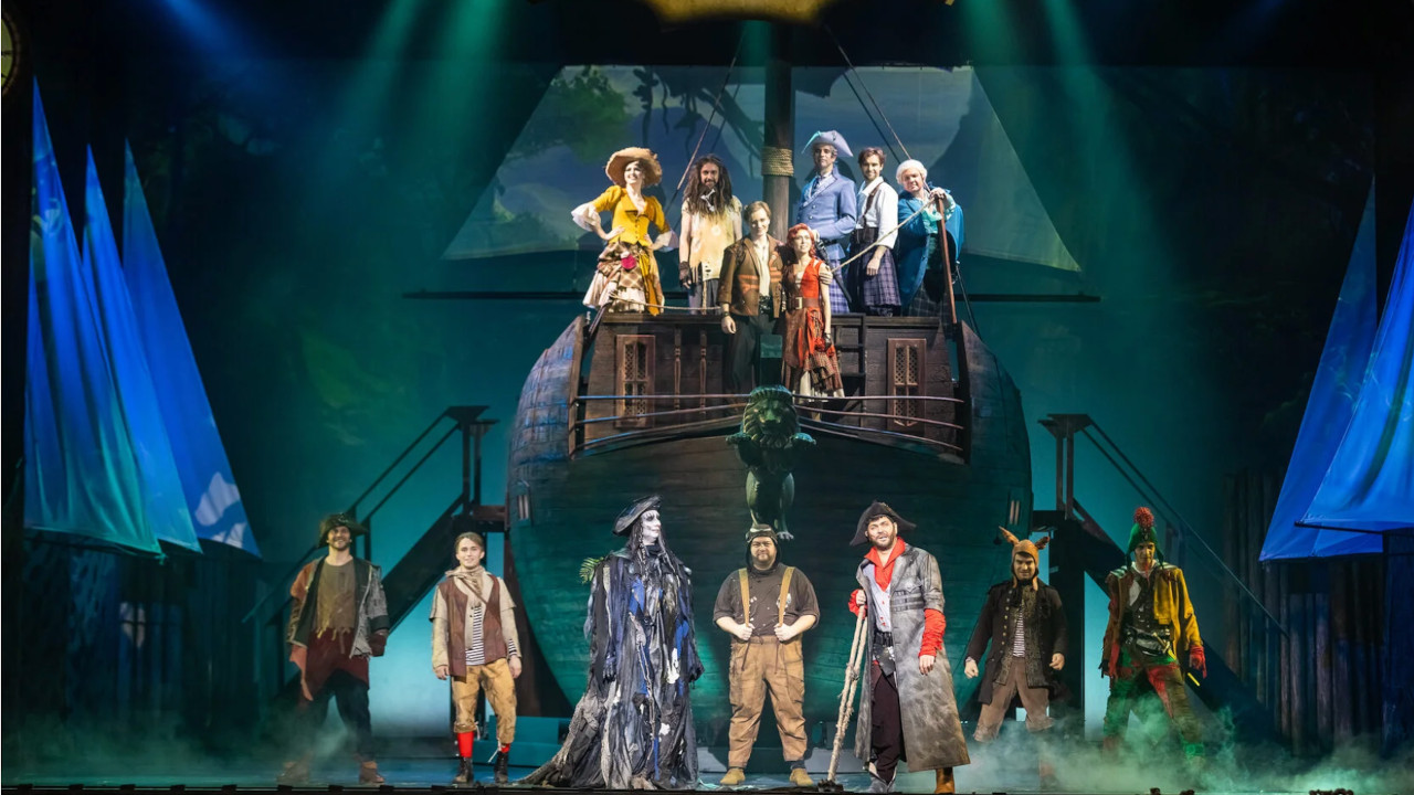 Огромный фрегат почти на полсцены, паруса-экраны с видеопроекциями, морская сирена, пролетающая над залом, призрак капитана Флинта, яркие костюмы, хореография, спецэффекты и музыка — все это делает «Остров сокровищ» одинаково увлекательным для детей и взрослых.