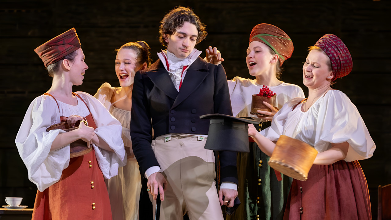 Не отстает от онегинского дяди и Татьяна: она складывает свое письмо в кораблик и отпускает по ручью, протянувшемуся через сцену. Однако знаменитое «Я вам пишу» прозвучит лишь в финале, когда Евгений встретит Татьяну на балу и прочтет ее признание — как доказательство любви и приговор самому себе.