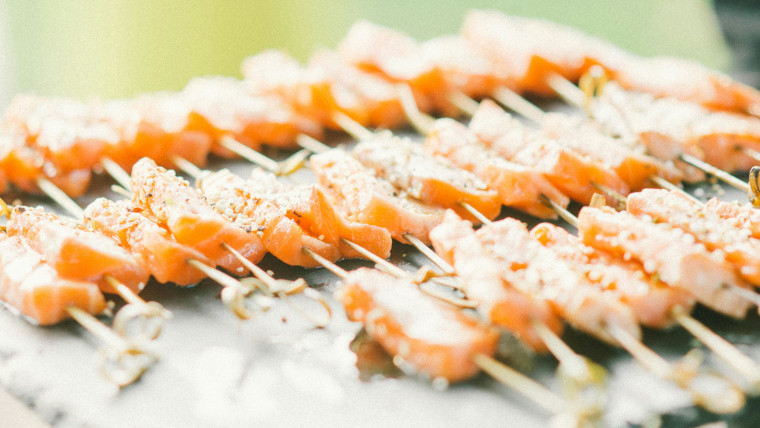Морская рыба из семейства лососевых — отличная замена слегка поднадоевшей курице. К тому же в ней содержатся важные для детского организма омега-3 и омега-6 жирные кислоты. Если приготовить рыбу не с традиционным гарниром, а на шампуре, получится поистине ресторанная подача. Полкило филе лосося режем на одинаковые кусочки. Делаем маринад: смешиваем две столовые ложки соевого соуса и меда, добавляем специи по вкусу. Отправляем филе отдыхать в соус на 20 минут. Нанизываем на бамбуковые шампуры, чередуя рыбу с помидорами черри и сладким перцем. Запекаем в духовке 15 минут при 180 °С.