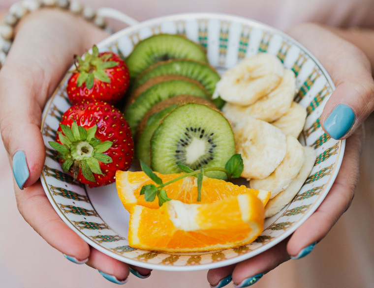 Нарядить елку фруктами — почему бы и нет? Тем более, что это тот самый вариант легкой сладкой закуски, когда и полезно, и красиво. Сворачиваем конусом кусок ватмана, обрезаем лишнее, чтобы елка могла стоять. Для устойчивости внутрь можно залить монтажную пену. Оборачиваем конус зеленой бумагой или фольгой. Нанизываем на шпажки клубнику, кубики ананаса, банана, виноград и вставляем в конус, формируя елочные ветки. Можно сделать с одной стороны желтые ягоды и фрукты, допустим, бананы, груши, яблоки, а с другой — все красное: клубнику, красный виноград, малину. Так ваша фруктовая красавица будет выглядеть еще эффектнее и вызовет у детей дополнительный интерес: с какой бы стороны ее попробовать?