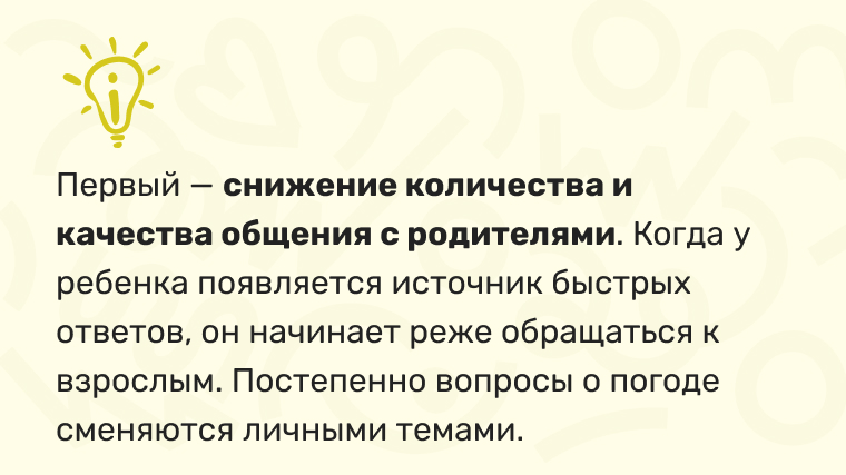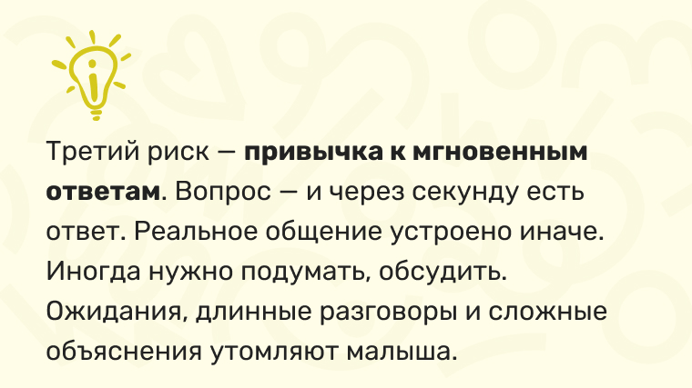 Но ни один голосовой помощник не способен дать ребенку главное — ощущение, что рядом есть человек, который готов слушать, отвечать и просто любит тебя. Любит за то, что ты есть.