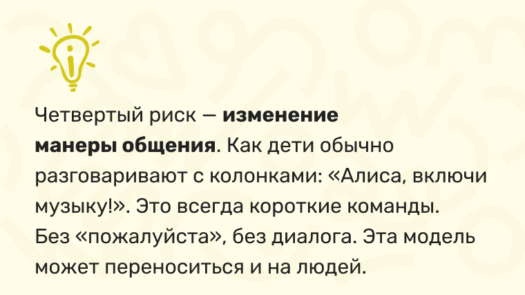 Для взрослого человека очевидно: голосовой помощник — это искусственный интеллект, и он четко понимает, как работает «эта штука». Но для ребенка граница между живым собеседником и технологией не всегда очевидна.