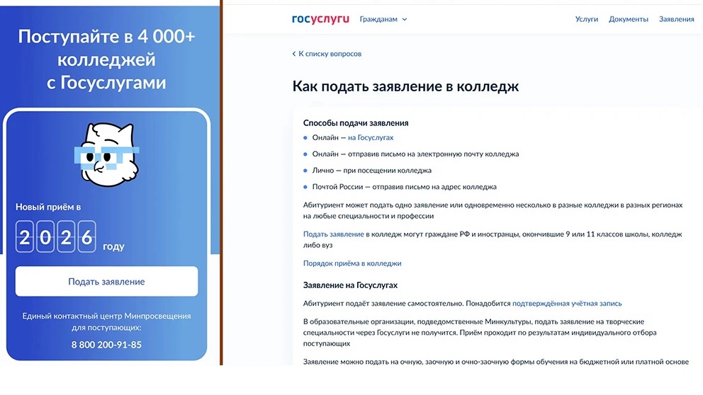 Онлайн-подача позволяет направить заявления сразу в несколько учебных заведений. Ограничений по количеству колледжей, куда можно одновременно подать документы, в отличие от вузов, нет.