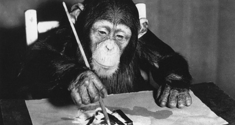 Конго шимпанзе. Шимпанзе, который очень любил рисовать и впадал в истерику, если у него отбирали холсты. Это история не про умения приматов и людей. И не про звенья эволюции. Это история, мне кажется, про одержимость.